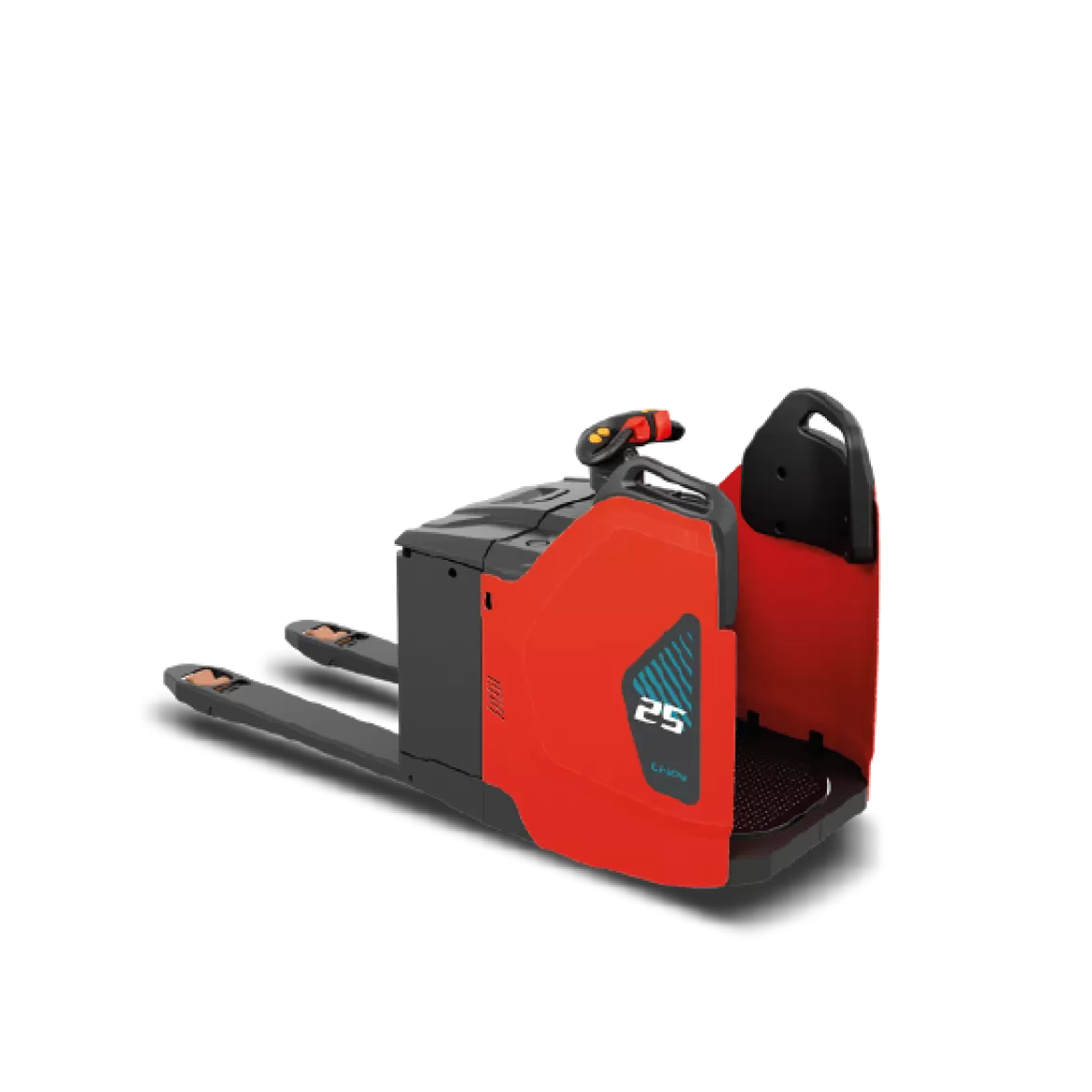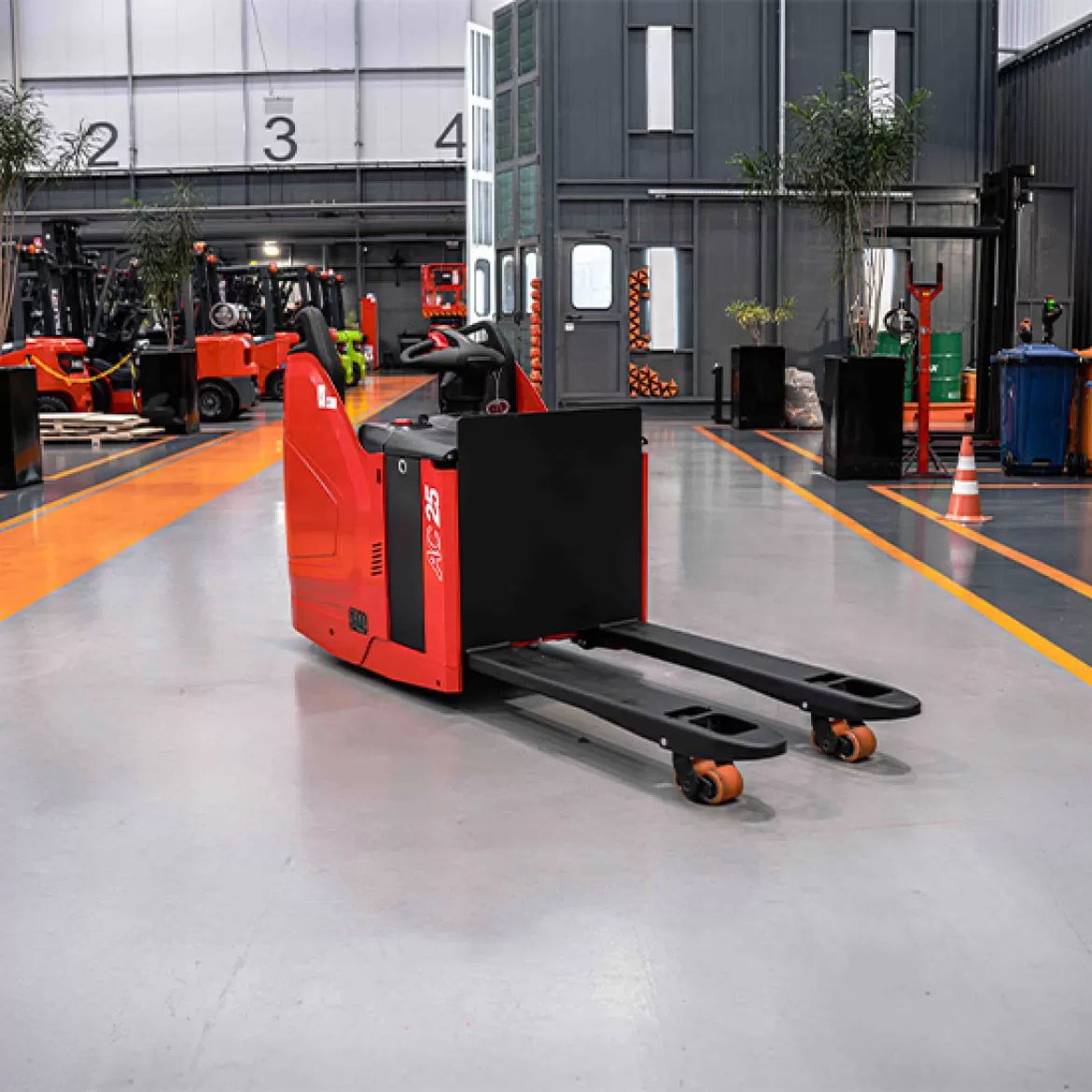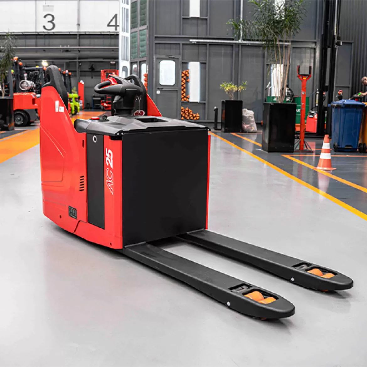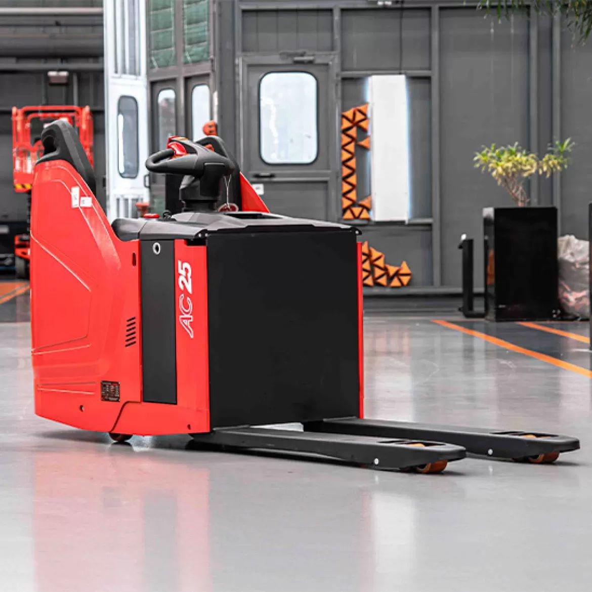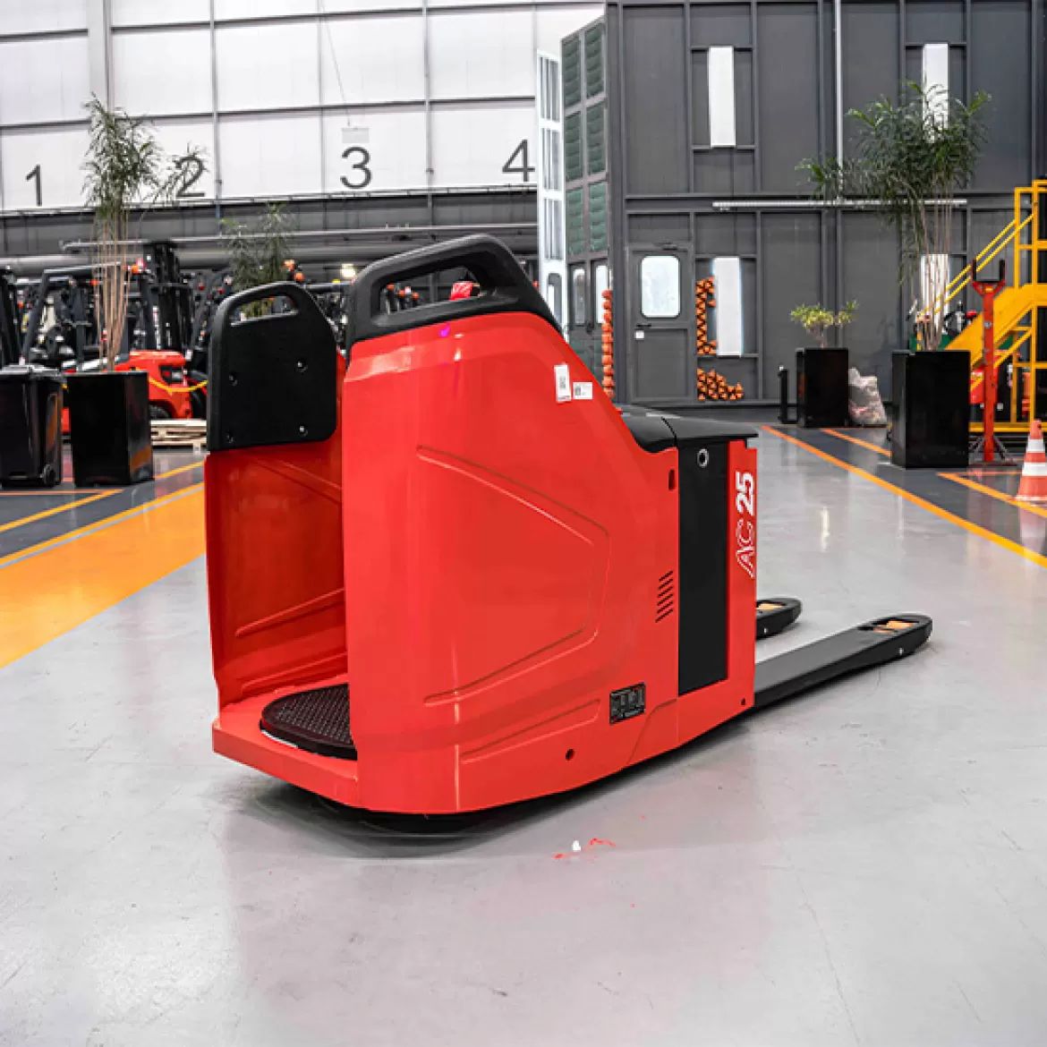 Sistema de tração flutuante patenteado com proteção lateral para o operador, corredor operacional de 2993mm, alta velocidade com segurança através da redução de velocidade em curvas e freio eletromagnético.
